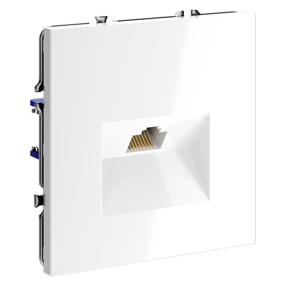 Розетка поддерживает стандарты Cat.6 и Cat.5e, обеспечивая передачу данных до 10 Гбит/с на частоте до 250 МГц — этого более чем достаточно для современных задач: от видеоконференций и онлайн-игр до передачи 4K-видео и работы с облачными сервисами.