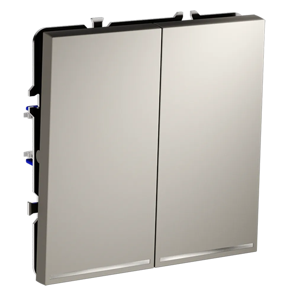 Каждая из двух клавиш работает как независимый проходной переключатель, позволяя управлять двумя световыми контурами (например, основным освещением и подсветкой) параллельно из разных мест. Это исключает необходимость возвращаться к первому выключателю и значительно повышает комфорт повседневного использования.