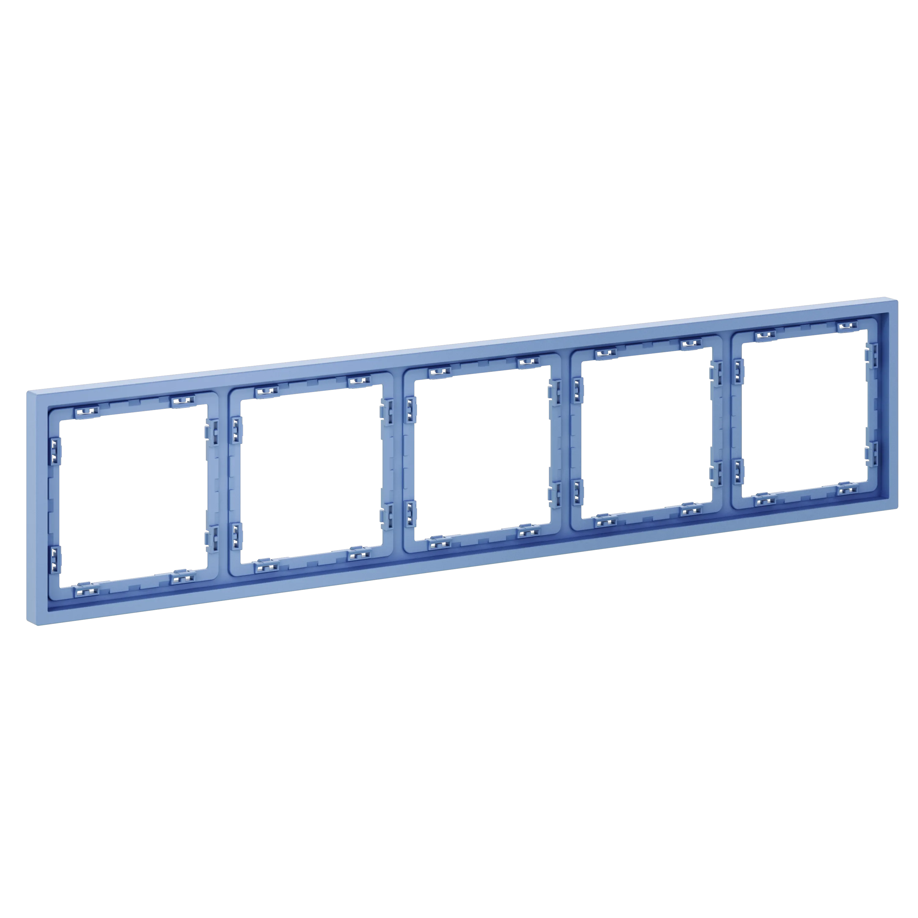 • Уникальный сине-голубой тон — выделяется среди белых, серых и чёрных рамок, визуально оживляет массивную 5-постовую конструкцию