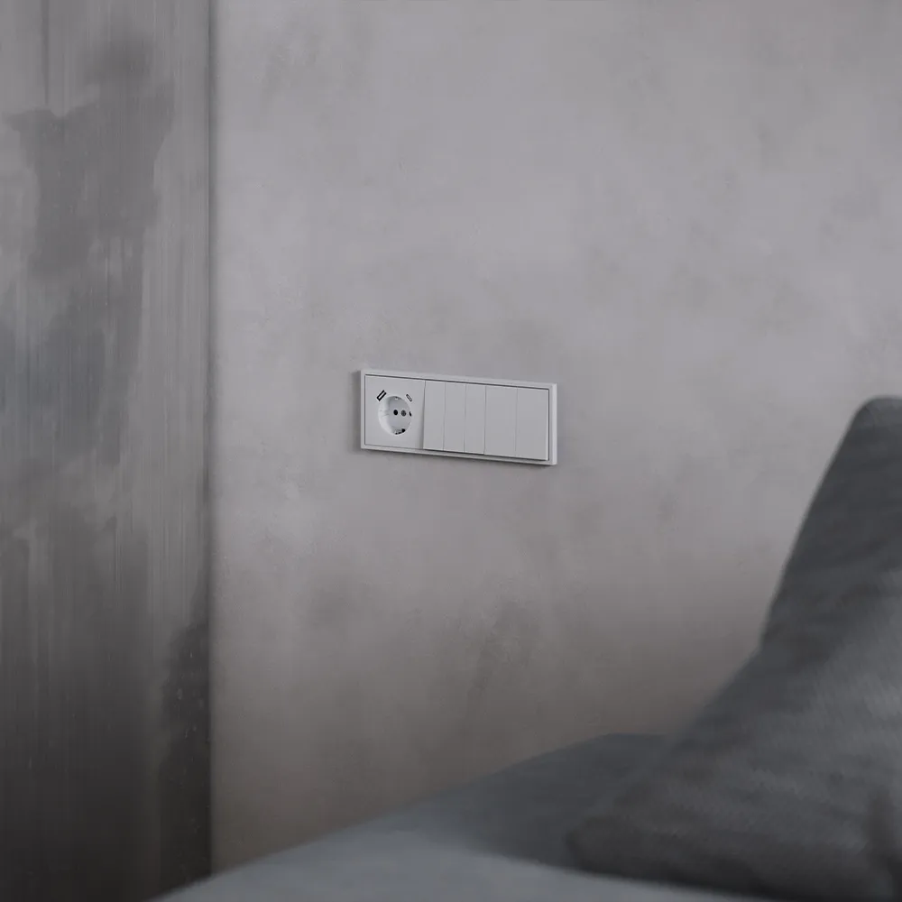 Розетка полностью совместима с пластиковыми и стеклянными рамками той же серии и гармонично вписывается в любую композицию из выключателей, диммеров и других устройств VOLTUM S70.